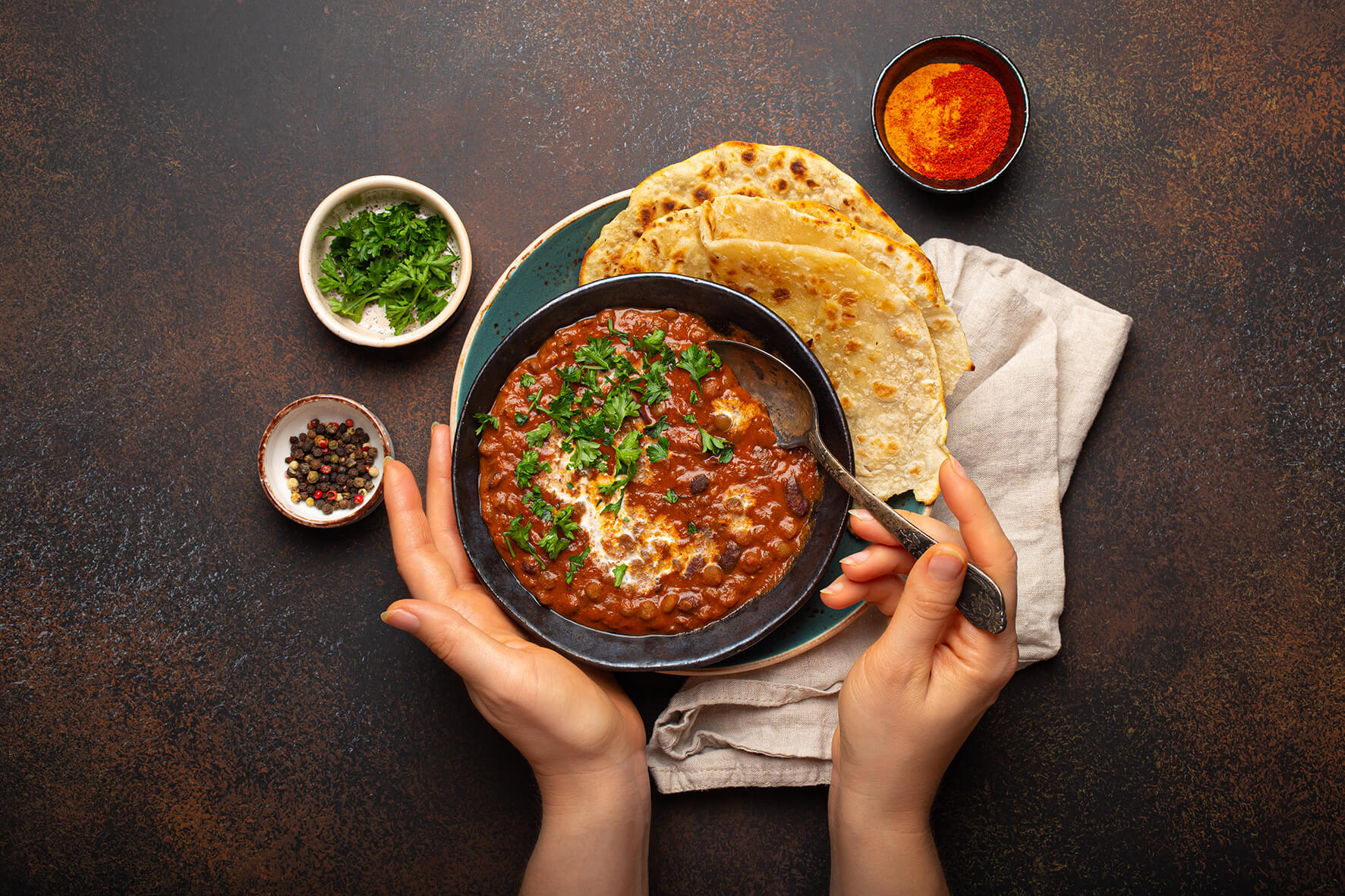 In Indien sowie in vielen Regionen des Nahen Ostens und Afrikas wird ausschließlich mit der rechten Hand gegessen. Die linke Hand gilt traditionell als unrein. Diese Regel ist Ausdruck kultureller Werte und tief verwurzelter Tischtraditionen.