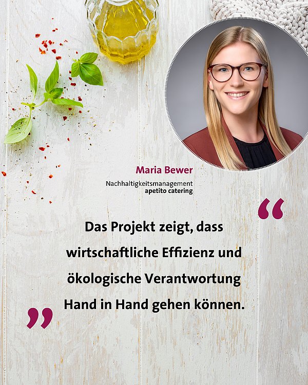 „Dieses Projekt zeigt, wie wirtschaftliche Effizienz und ökologische Verantwortung Hand in Hand gehen und wie innovative Ansätze und Teamwork die Zukunft der Gemeinschaftsverpflegung positiv beeinflussen können“, sagt Maria Bewer aus dem Nachhaltigkeitsmanagement von apetito catering. „Es ist unser Ziel, diese Ansätze stetig weiterzuentwickeln. Mit unserer Erfahrung und unserem Engagement stehen wir bereit, Veränderungen aktiv voranzutreiben.“